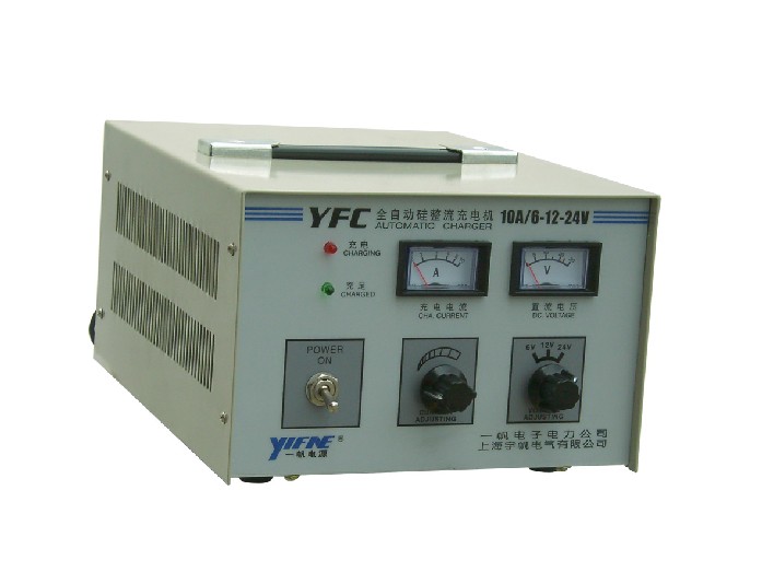 YFC系列充足自停型自动充电机,由整流变压器隔离降压,进口整流器件和优质波质换档开关及先进的控制线路和熔断器组成,电压电流表显示,直观方便,在GCA的基础上增加了电池电压充足保护,欠电恢复充电。具有性能安全可靠,工作稳定,结构合理,性价比高等特点。本产品广泛应用于汽车修配厂,柴油机组【不能用于启动】,船用电瓶、矿灯启动型蓄电池自动充电。注意:本机没有恒压限流功能,不能用于免维护电池的自动充电及辅助电瓶或代替电瓶启动电机负载。